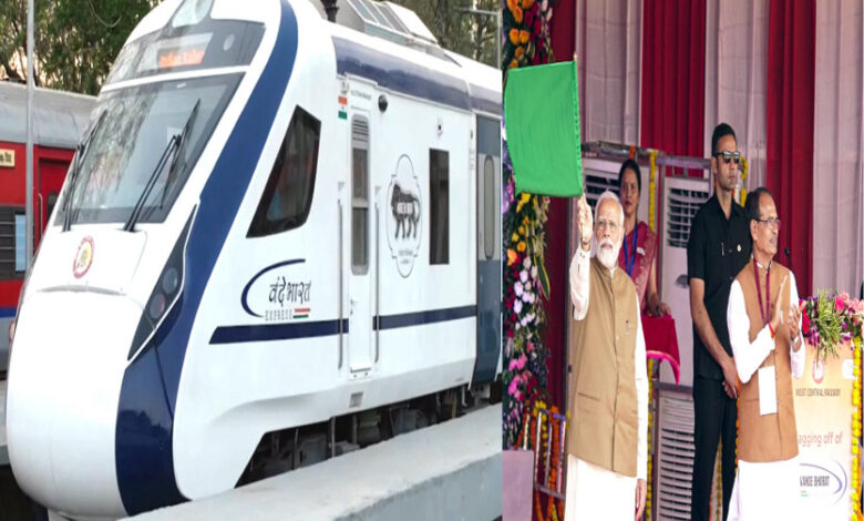 भोपाल. मप्र की पहली वंदे भारत ट्रेन शनिवार को रानी कमलापति रेलवे स्टेशन से हजरत निजामुद्दीन के लिए रवाना हुई। प्रधानमंत्री नरेंद्र मोदी ने इस ट्रेन को हरी झंडी दिखाकर रवाना किया। मोदी ने कहा-मध्यप्रदेश निरंतर विकास की गाथाएं लिख रहा है। खेती,उद्योगए गरीबों के लिए घर, हर घर जल से नल, गेहूं उत्पादन आदि अनेक क्षेत्रों में प्रदेश अग्रणी है। पहले बीमारू कहा जाने वाला राज्य आज हर क्षेत्र में प्रशंसनीय कार्य कर रहा है। हमें विकसित भारत में मध्यप्रदेश की भूमिका को और बढ़ाना है। नई वंदे भारत ट्रेन इसी संकल्प का हिस्सा है।